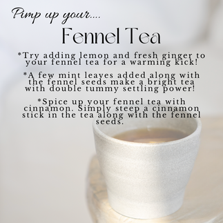 Or you could add a couple of drops of fennel essential oil to a tablespoon of carrier oil and massage it into your abdomen or feet.